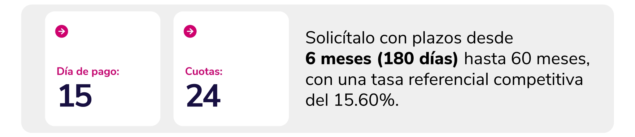 Flexibilidad: Puedes elegir el monto y plazo que mejor se adapte a tu situación.